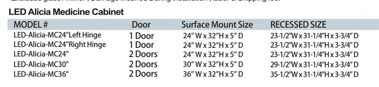 24" Alicia MC Series LED Medicine Cabinet (Surface Mount/Recessed)(Right Hinge)