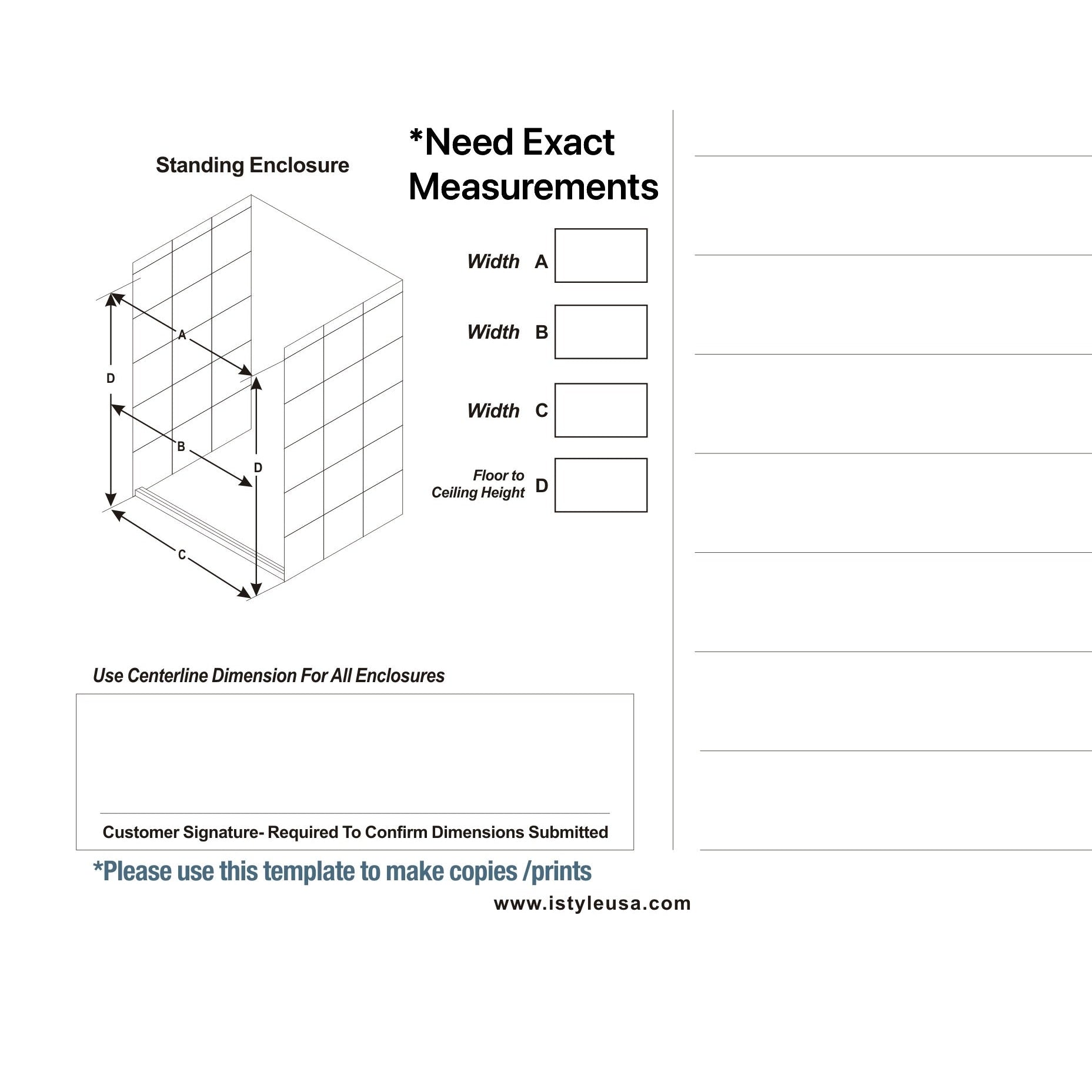 Provide #1, #2, #3 width measurements and max ceiling height for a 66" glass fit. We'll give ideal sizes. print the bottom sheet or PDF we provide to fill the measurements: all three width, max ceiling height, hardware finished & etc. Opening ranging from 24-26" *Hinge on wall. Hinge on glass .