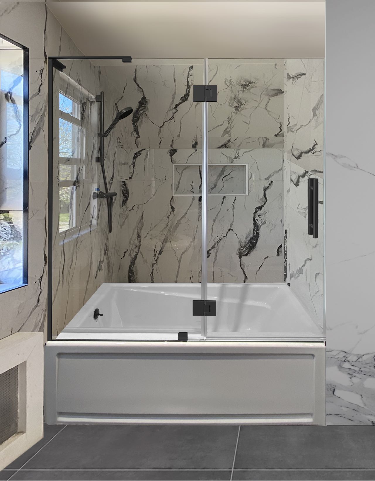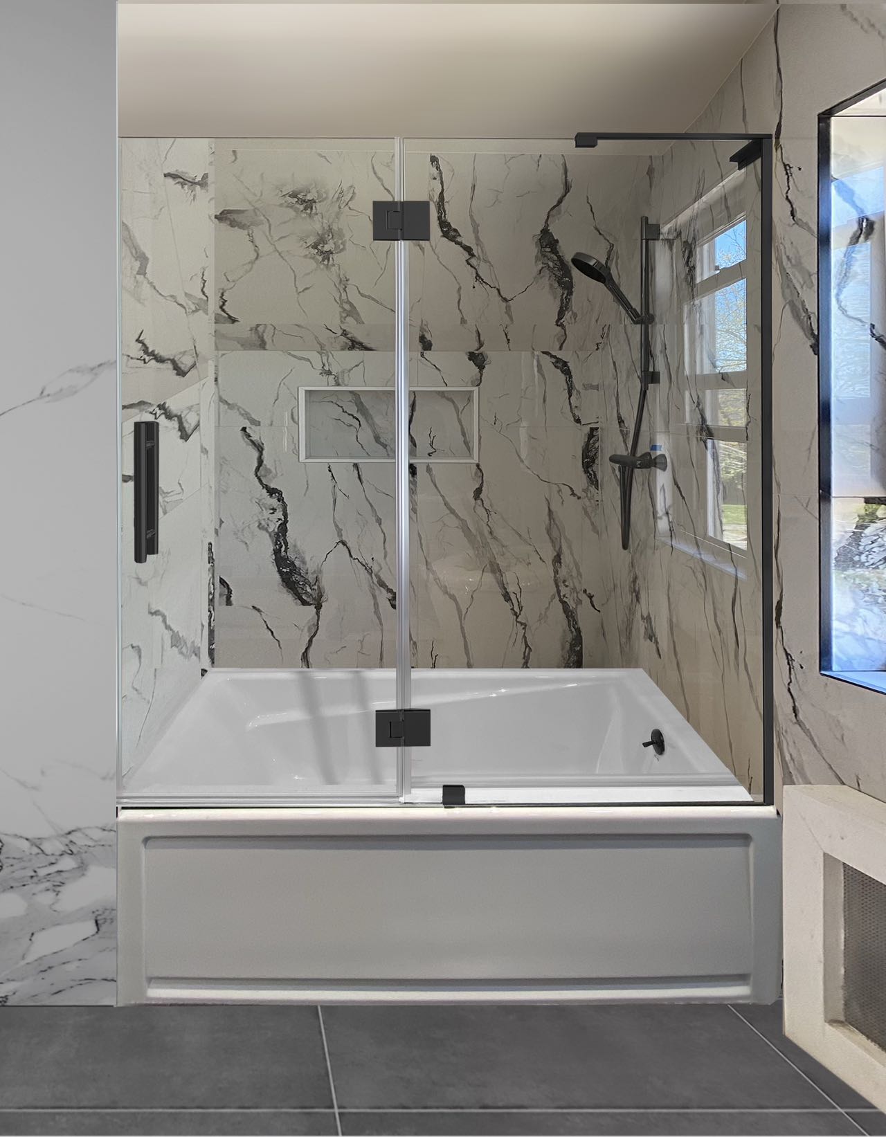 2-The shower door can be set up to open inside or outside.