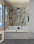 Miko's Hinges Custom shower enclosure is crafted from 304 stainless steel hinges and tempered glass with Klearteck Treatment at 3/8" thickness. It can be customized tub door to fit almost any space, with a any Width and 30"-48" Return panel. Payment must be made in advance; no returns are accepted. For exact measurements and pricing, please email order@istyleusa.com.