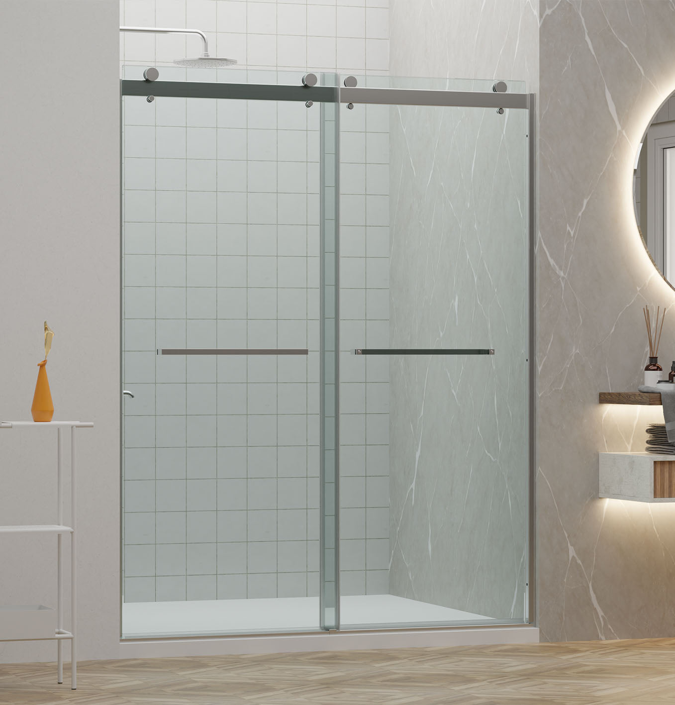 48" Linda Series Frameless Bypass Shower Door with Klearteck Treatment (5/16" Thickness) (Chrome)