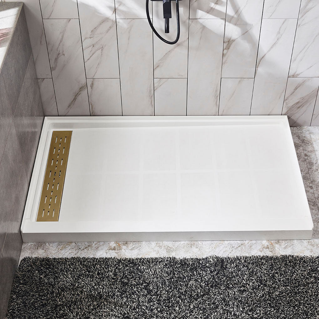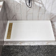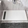 Introducing our modern white rectangular shower base with a right-hand drain, featuring a 2.44'' diameter, perfect for standard 2-inch sewer systems.