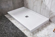 Introducing our modern white rectangular shower base with a right-hand drain, featuring a 2.44'' diameter, perfect for standard 2-inch sewer systems.