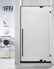AH01 Hinge frameless shower enclosure that features luxurious 36" long vertical handle, creating a stunning appearance. Exclusive glass treatment with resistant coating klearteck , for a superior protection against stains and watermark.