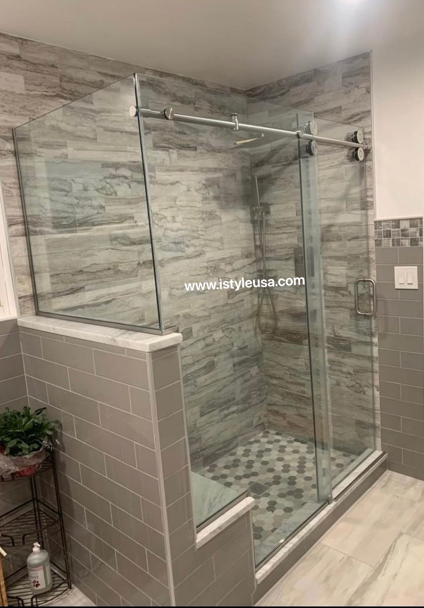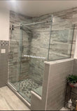 MZ Frameless Shower Enclosures with Wall/Half Wall Return Panel (3/8" thickness) (Chrome/Brushed Nickel/Matte Black/Brushed Gold) Custom 72-84" width