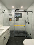 78" MZ Matthew Series Frameless (3 Panels) Single Sliding Shower Door with Klearteck Treatment (3/8" Thickness) (Matte Black)